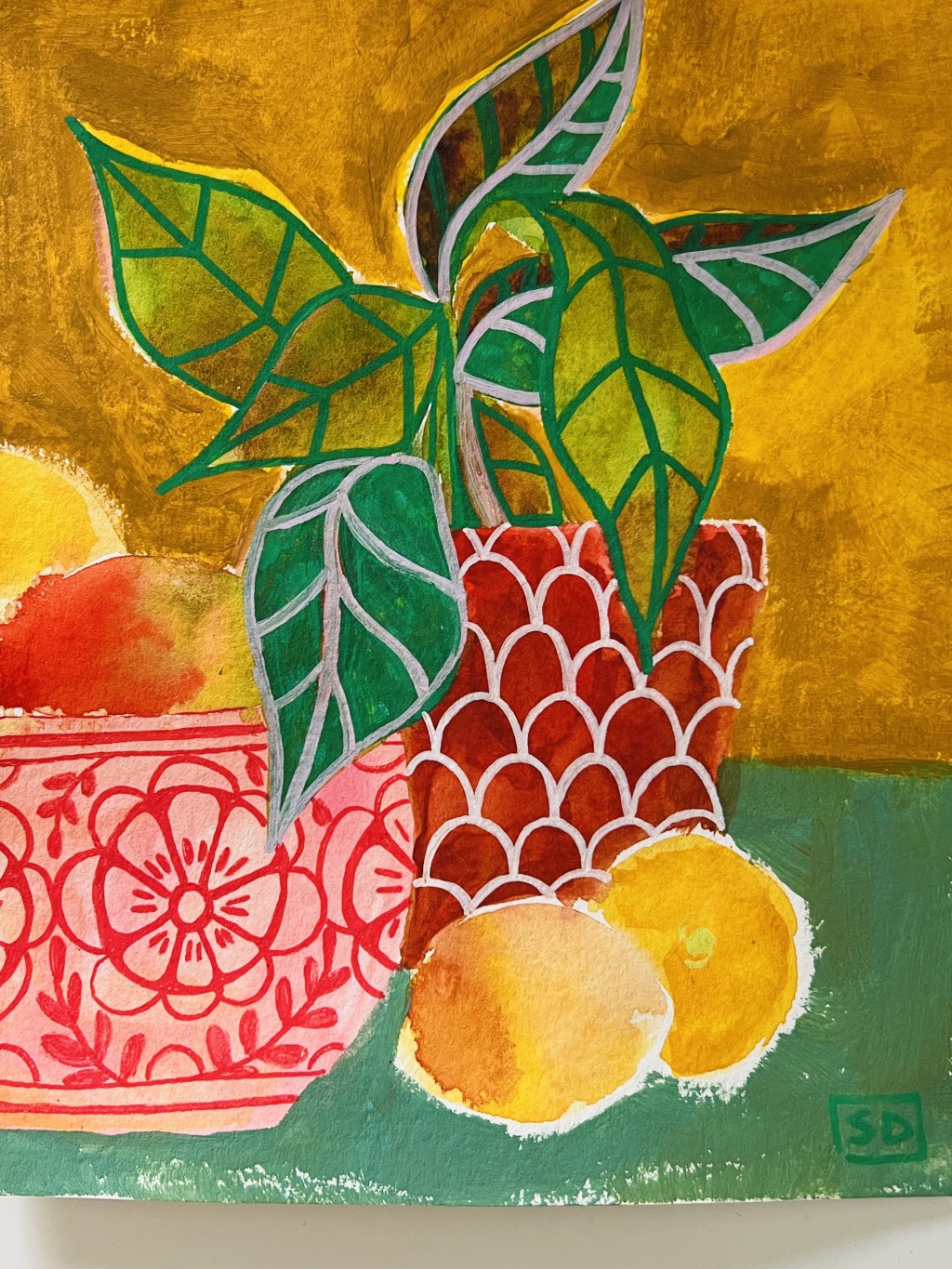 A page from my sketchbook: Watercolor, ink, and acrylic paint.
