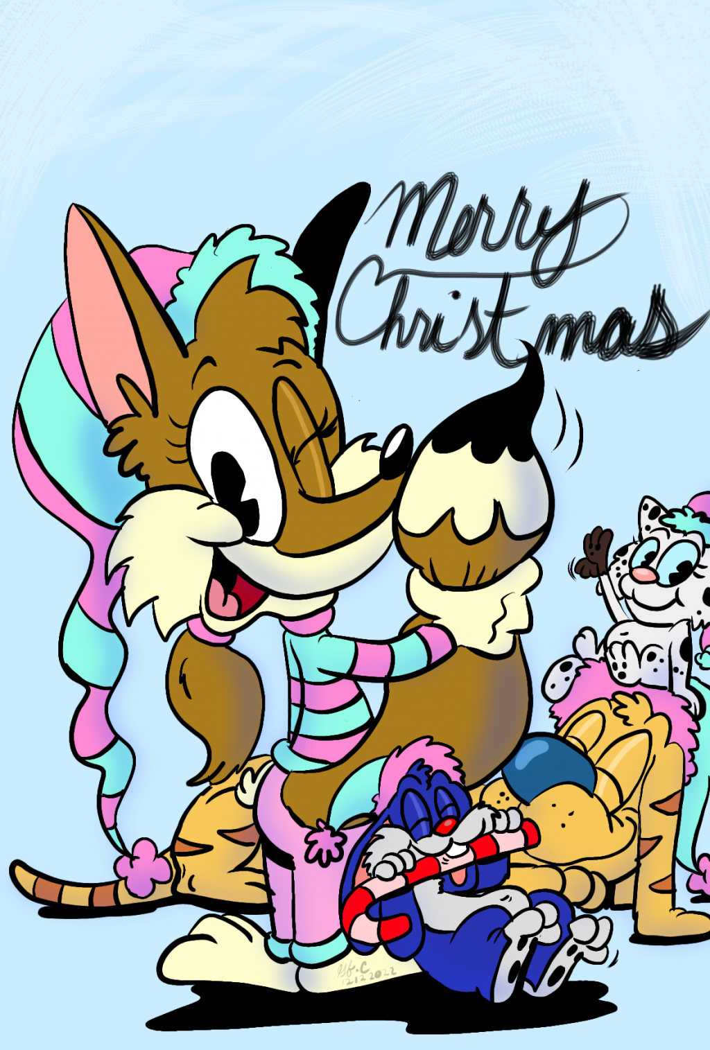 christmas, digital art, doodle, drawing, ginger fox the pencil tailed red fennec, ibispaintx, illustration