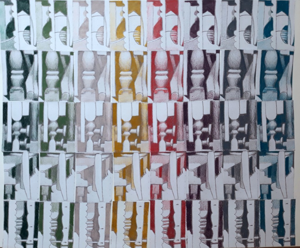 colored pencil, digital art, grid, paper, pattern, pencil, photocopy