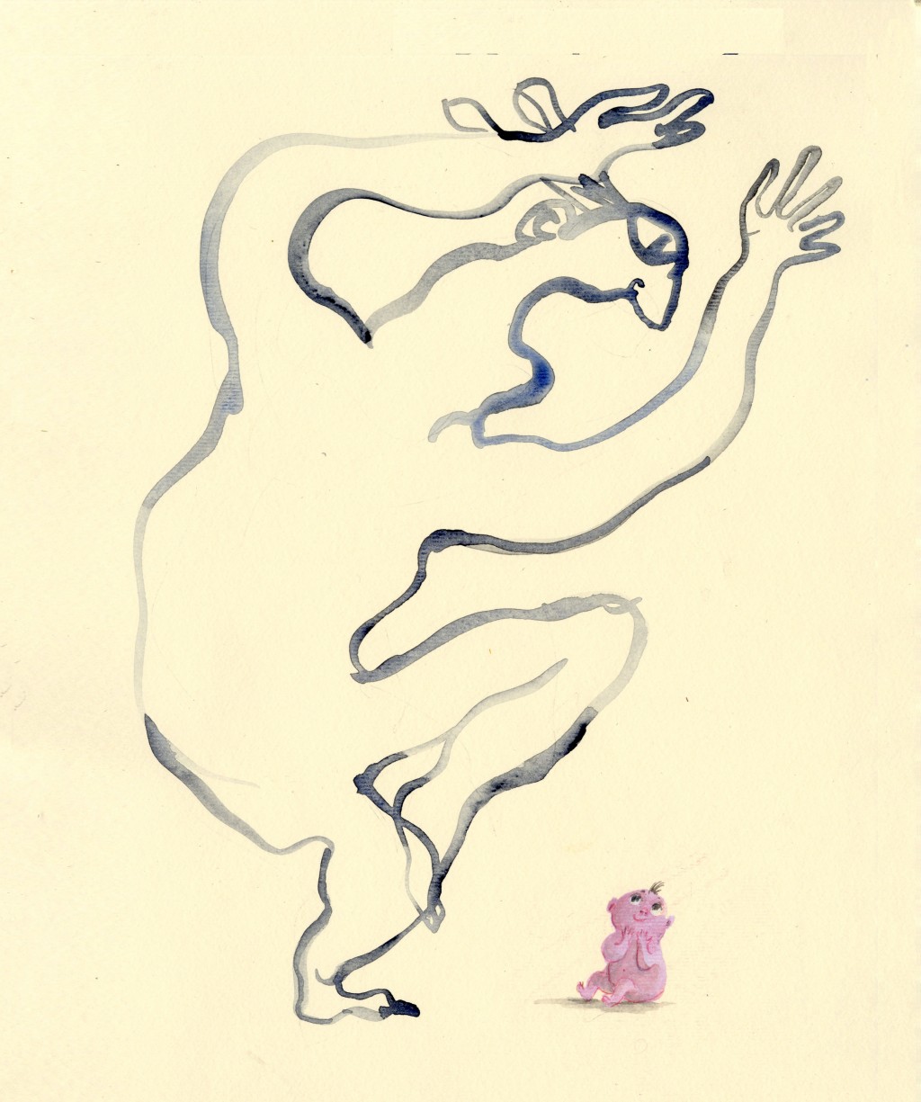 GLOOSCAP AND THE BABY From Favorite Folktales from Around the World byJane Yolen. Glooscap, having conquered the Kewawkqu’, a race of giants and magicians, and the Medecolin, who were cunning sorcerers, and Pamola, a wicked spirit of the night, besides hosts of fiends, goblins, cannibals, and witches, felt himself great indeed, and boasted to a woman that there was nothing left for him to subdue. But the woman laughed and said, “Are you quite sure, master? There is still one who remains unconquered, and nothing can overcome him.” In some surprise Glooscap inquired the name of this mighty one. “He is called Wasis,” replied the woman, “but I strongly advise you to have no dealings with him.” Wasis was only a baby, who sat on the floor sucking a piece of maple sugar and crooning a little song to himself. Now Glooscap had never married and wasignorant of how children are managed, but with perfect confidence he smiled at the baby and asked it to come to him. The baby smiled back but never moved... #dailydrawing #folktales #kidlitart #babies #algonquian