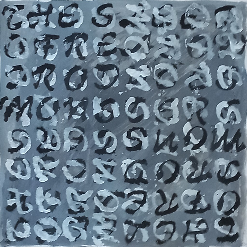 acrylic, black and white, letters, paper, stencil