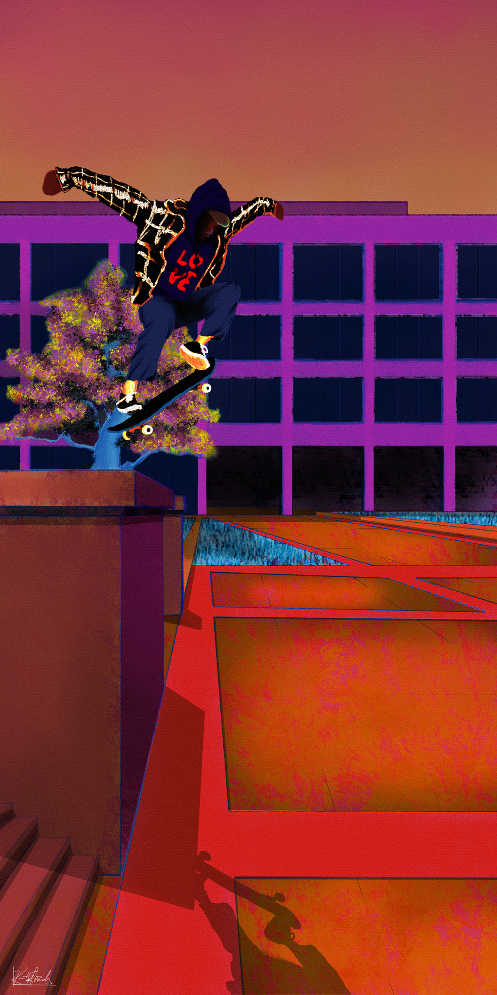 Yet another senseless lynching that has me here with a broken heart. Like my other paintings on this subject, I wanted to focus on life. Tyre was dynamic and energetic, so I wanted to paint him soring. I also wanted to paint him defiant in the face of his oppressors. He was a skater, and they are no strangers to defiance. Thankfully, I found some excellent references to help me with the composition. Aesthetically, I wanted the comp to be modern, colorful, and hopefully impactful. I went for a pop art, illustration, and false-color vibe and minimized blending and refining layer edges. I painted this in Rebelle 6 and Photoshop. Much respect.