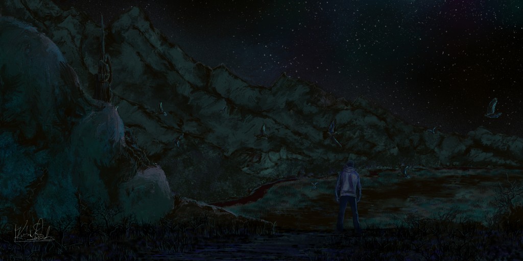 Wanted a fantasy comp but with a unique color palette and a modern subject. I also wanted the foreground to appear as a very distinct layer hoping the landscape appears downhill to the viewer. I used Barad-dûr as inspiration for the castle ruins.