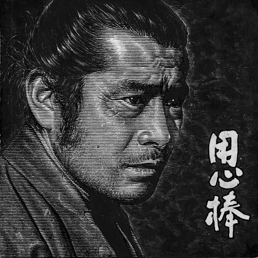 Toshiro Mifune. Scratchboard 6x6".