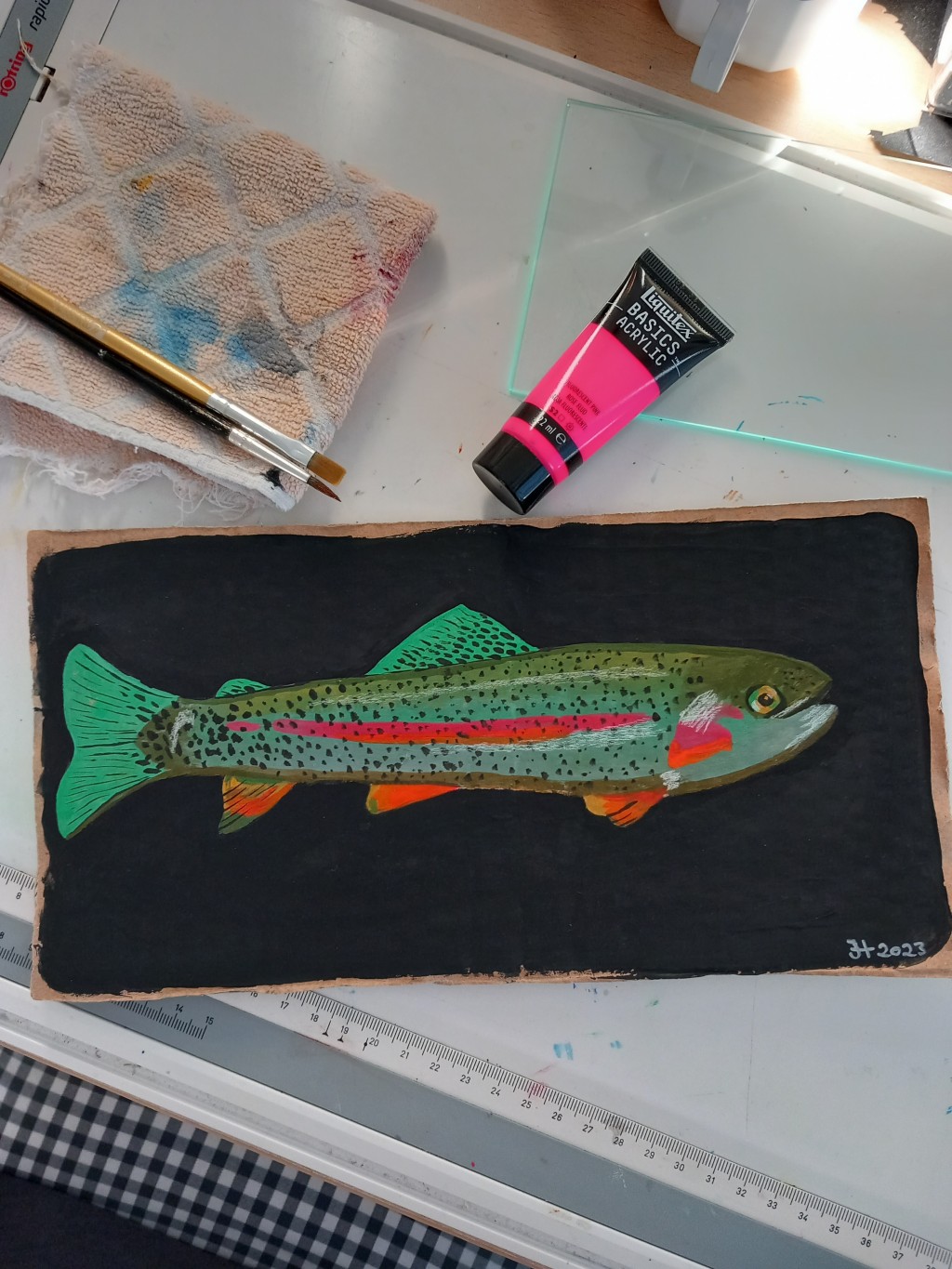 acrylic, animals, fish, flora fauna, painting, traditional art