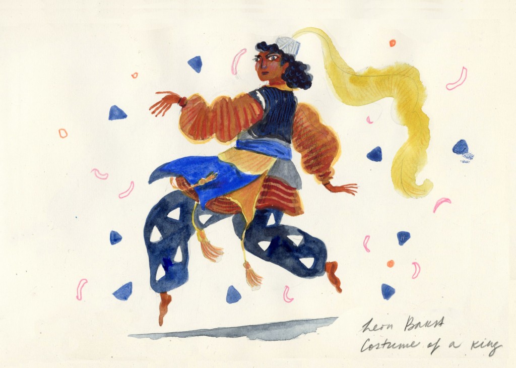 In ANU museum in Tel Aviv. The Costume of the King ( I don't know which king, I couldn't read the plaque) by Leon Bakst was without a person inside. I made him up. So now it is a costume of a dancing King. https://www.instagram.com/p/CthTwxZJjVY/?utm_source=ig_web_copy_link&igshid=MzRlODBiNWFlZA==