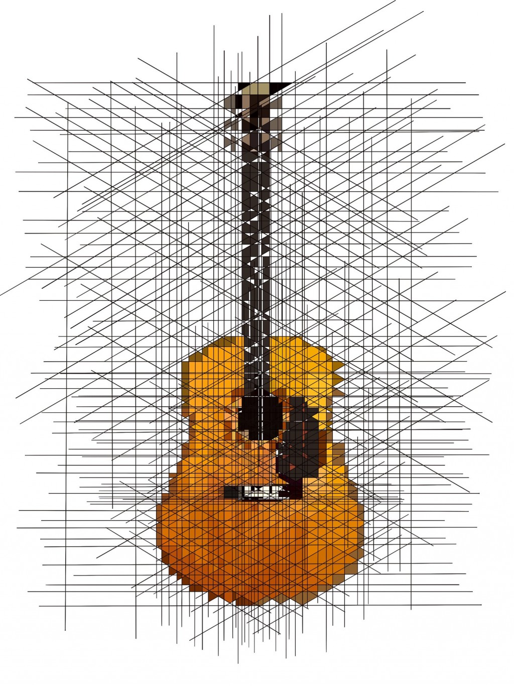 artist, contemporary, digital art, geometric, guitar, guitar art, illustration, line work, lines