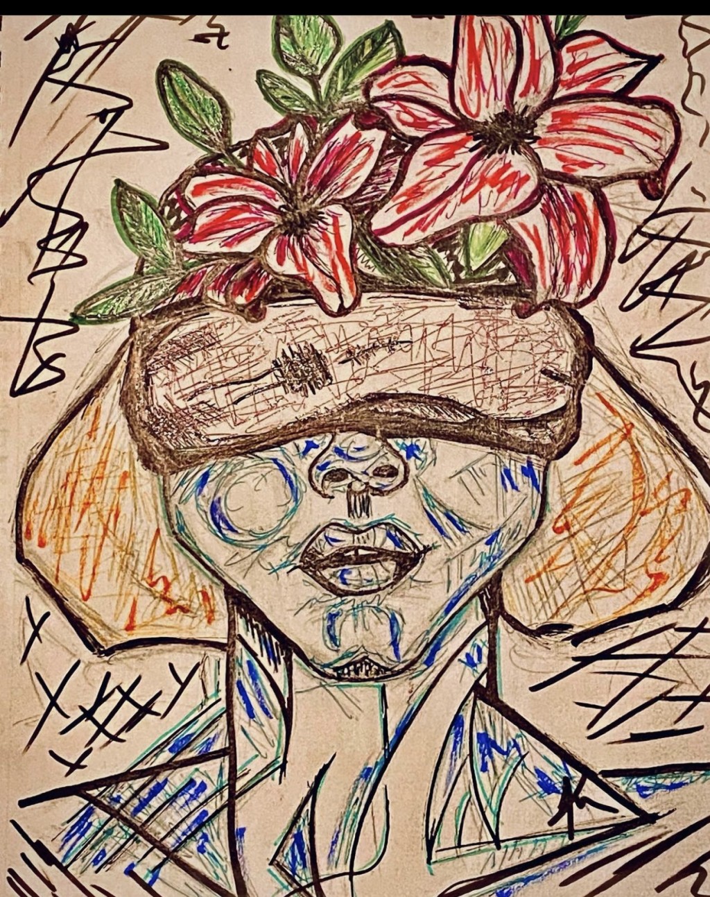 colored pencil, drawing, pen and ink