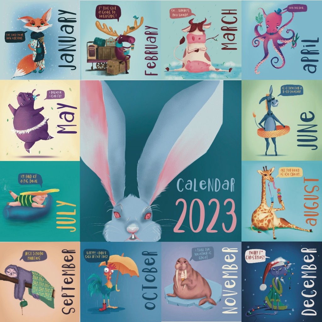 animal characters, calendar, character design, children illustration, funny animals, illustration, illustration calendar