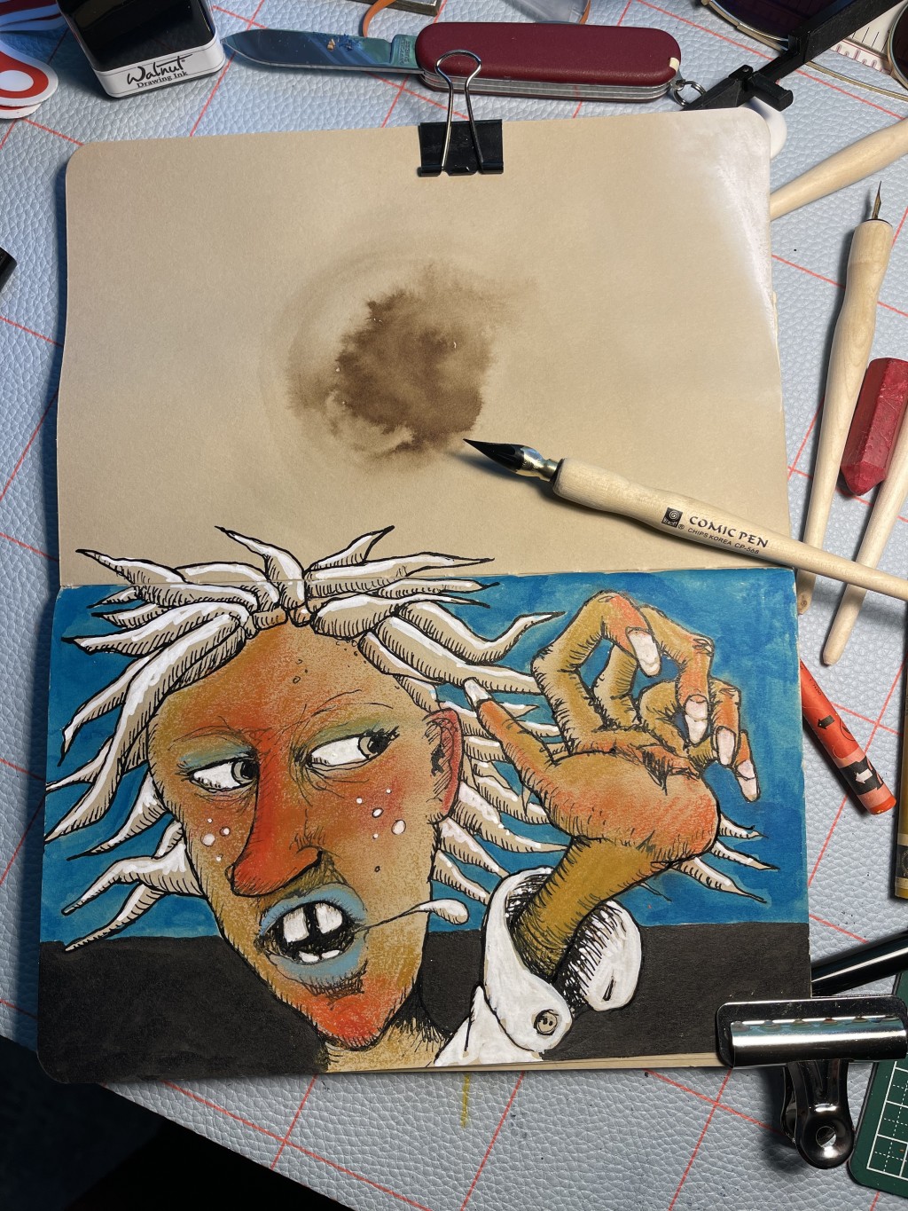 illustration, mixed media art, pen and ink, sketchbook