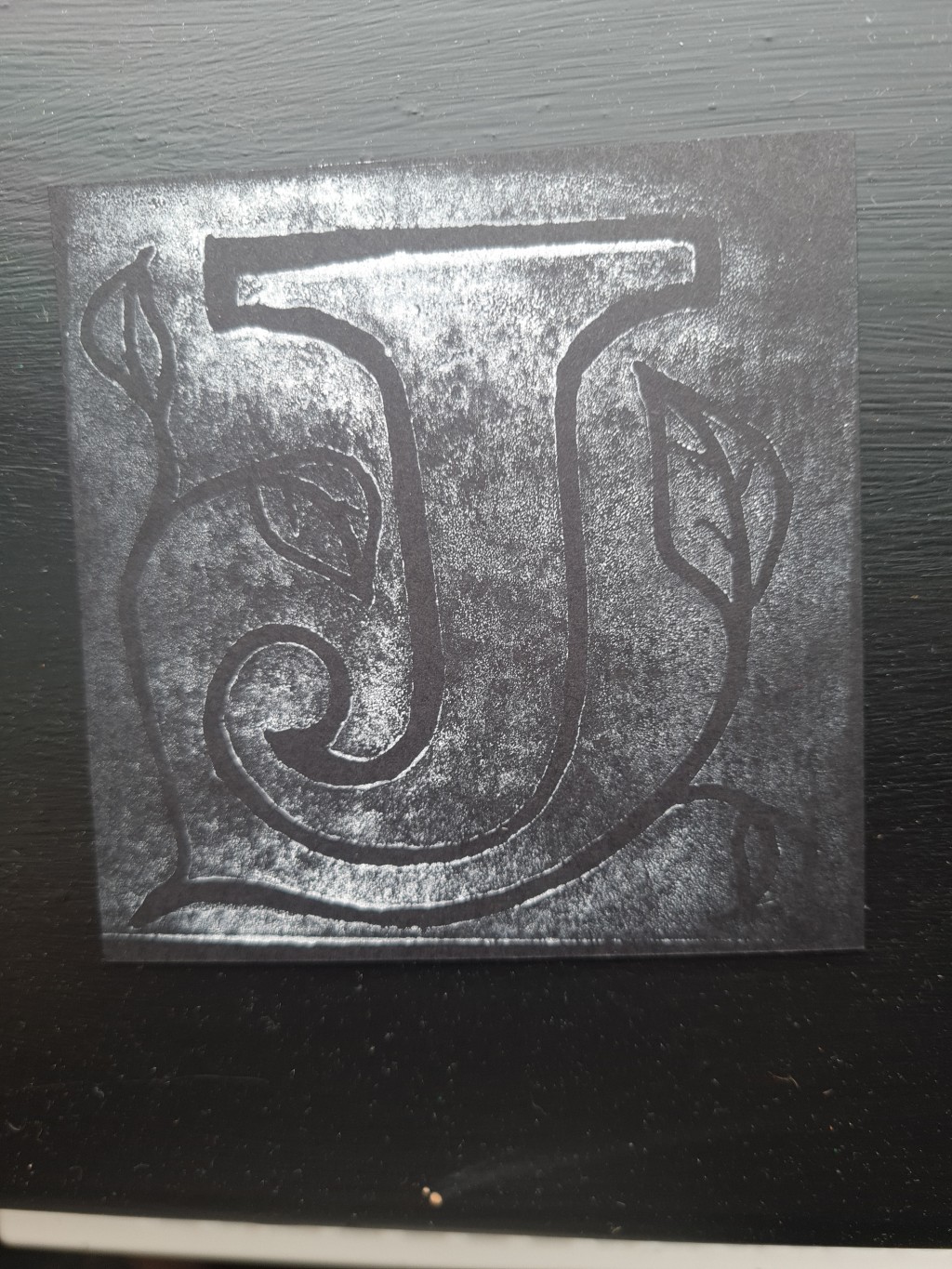 Lino cut of a friend's initial.