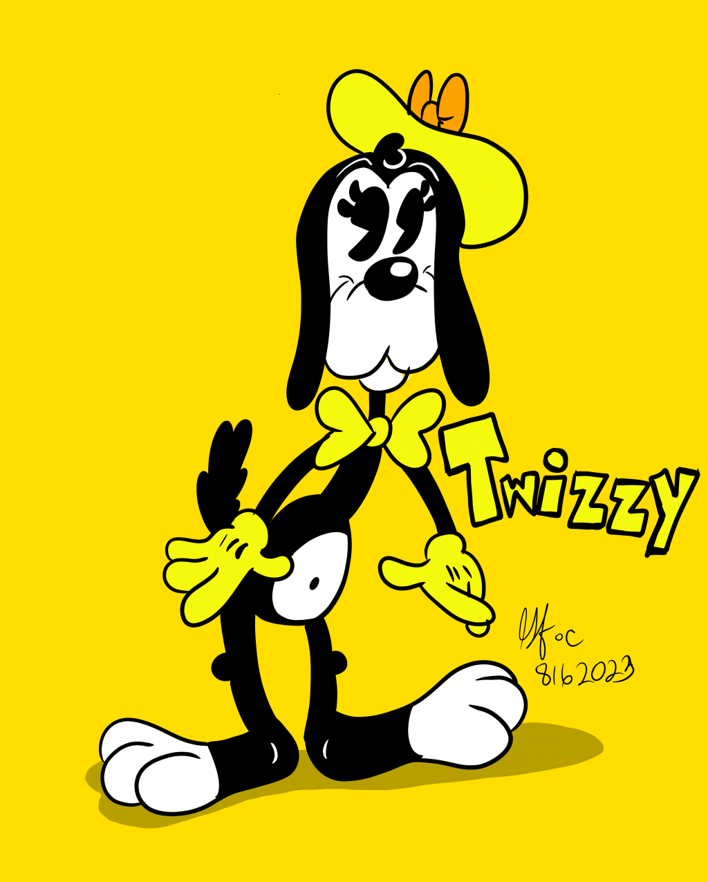 While doodling, I was thinking of my characters Dipsy Diddle, Peggy Bark, Chubbsly and Markley and imagined another dog character to the group. Ladies, gents and cartoon lovers alike. Meet Twizzle "Twizzy" the Basset Blood Hound.