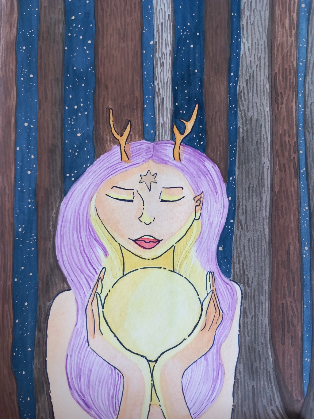 Done with wateecolour and pencil crayons on watercolour paper.