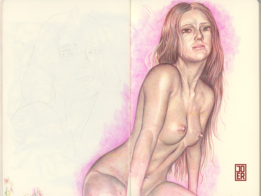 2023, Ballpoint pens on 5” x 8” (10” x 8” Double page spread) acid free Moleskine sketchbook paper, Adobe Photoshop.