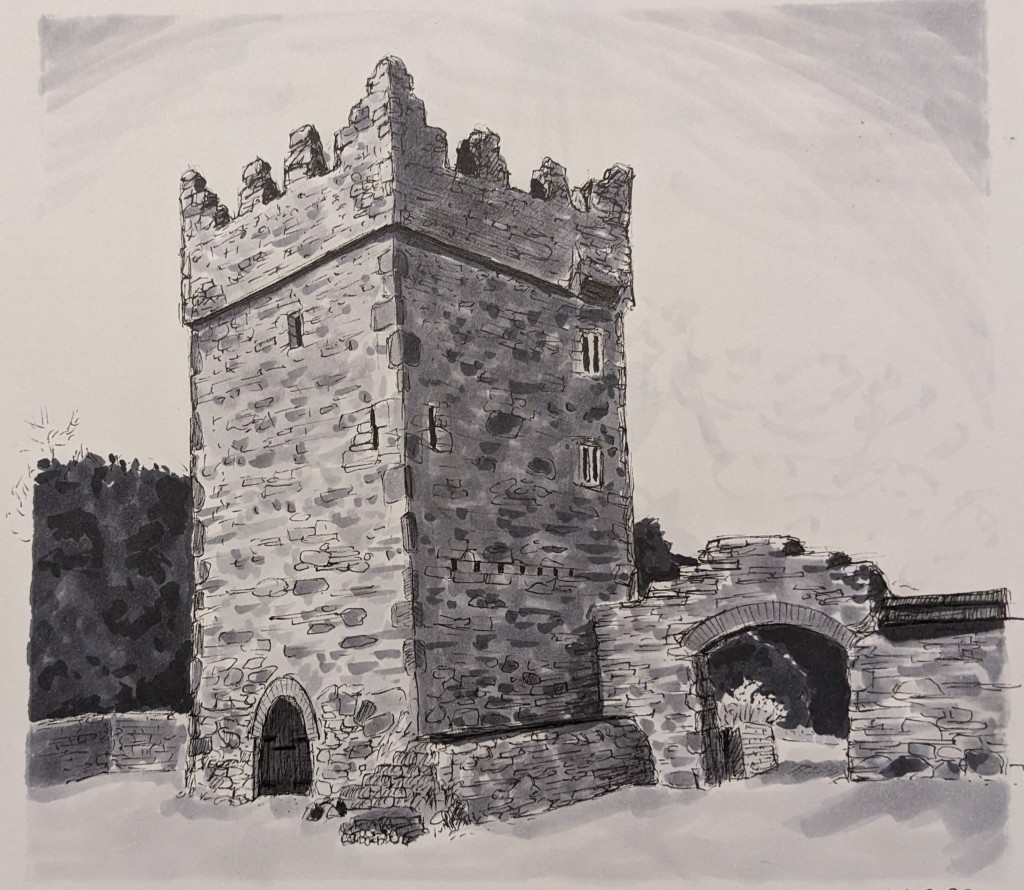 Freehand sketching in ink from a photo reference I found online, to practice conveying that lots-of-stones look without drawing all the stones (photo credit: K. Mitch Hodge). Micron pens + alcohol markers.