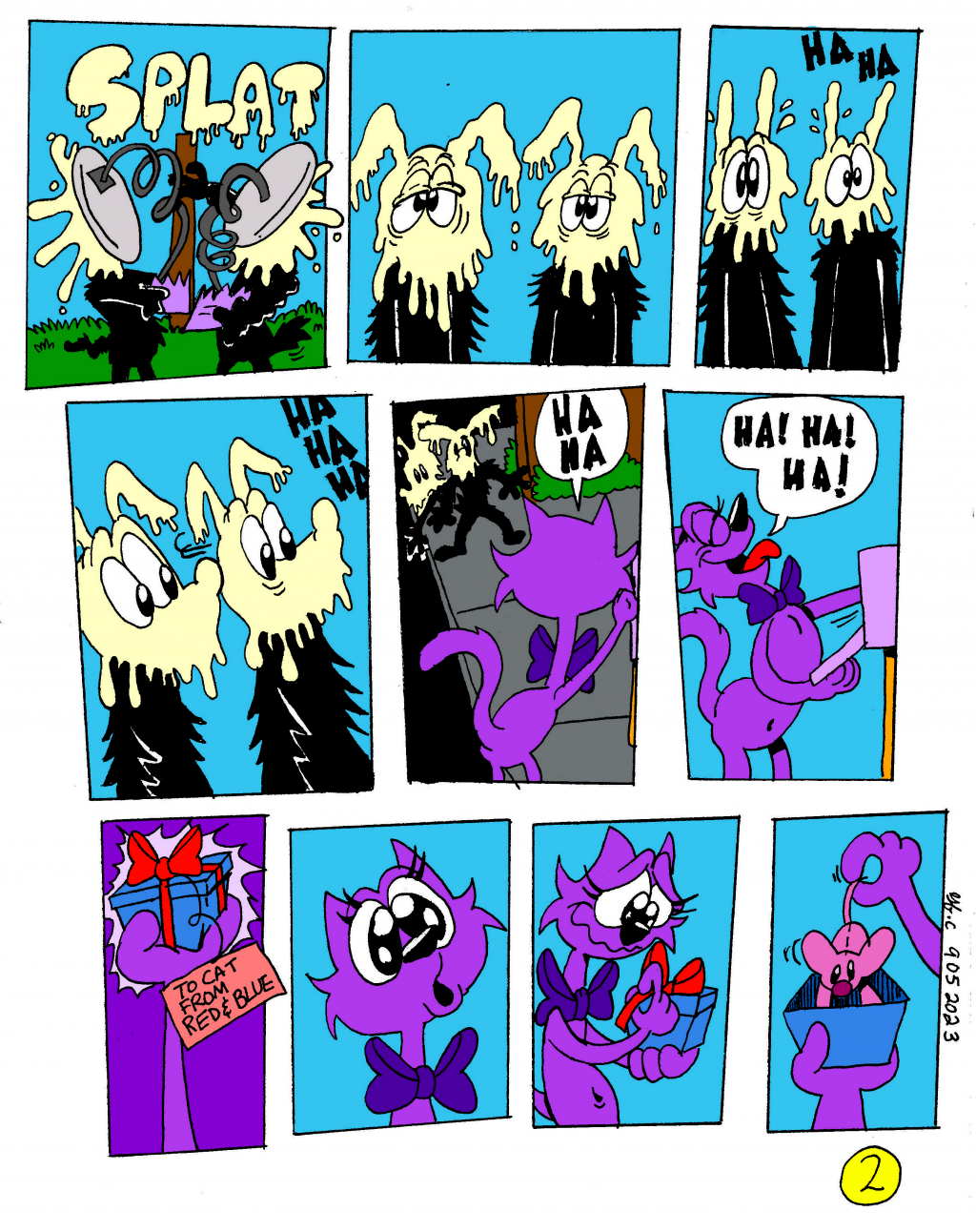 Every now and then Red and Blue Dog get pranked by Purple Cat. And much like Grey Spy, Purple's a female.