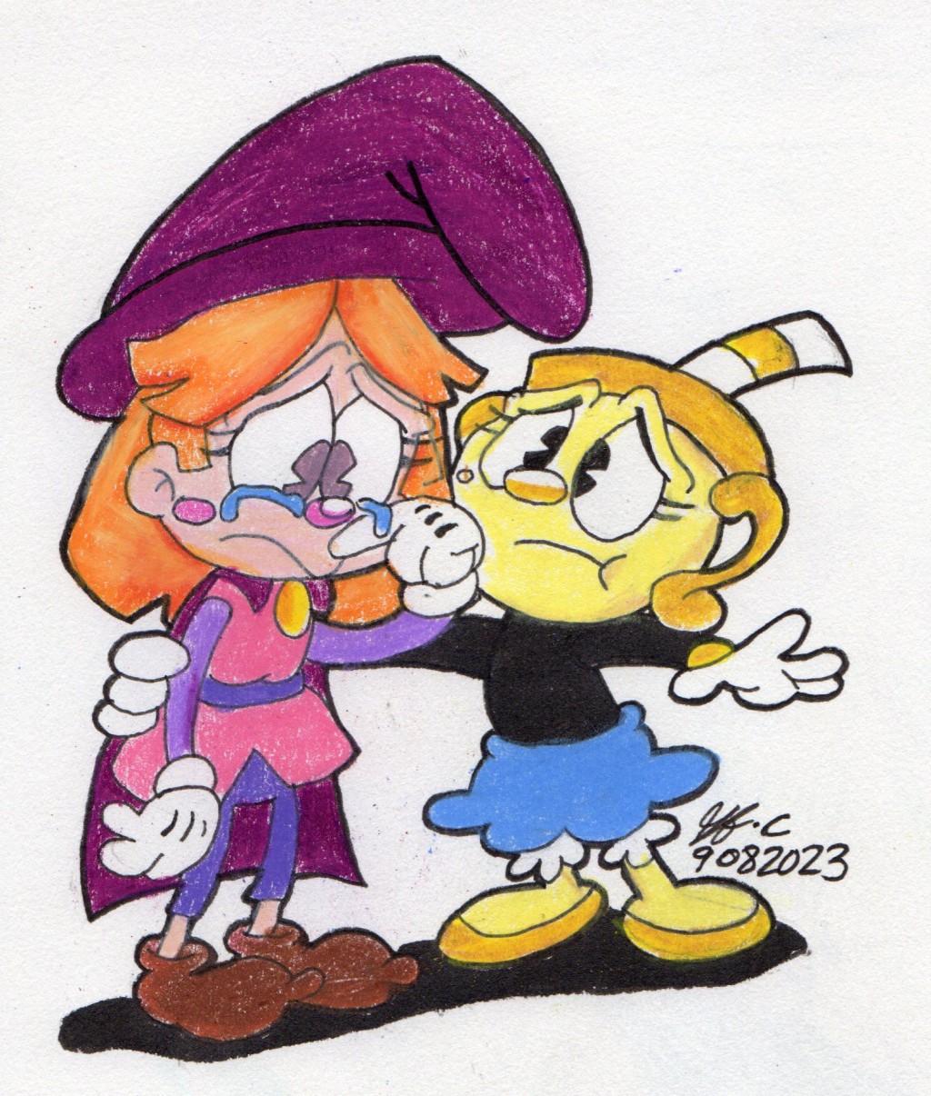 Penny from "Enchanted Portals" gets a friendly face in the form of Ms.Chalice from "Cuphead".