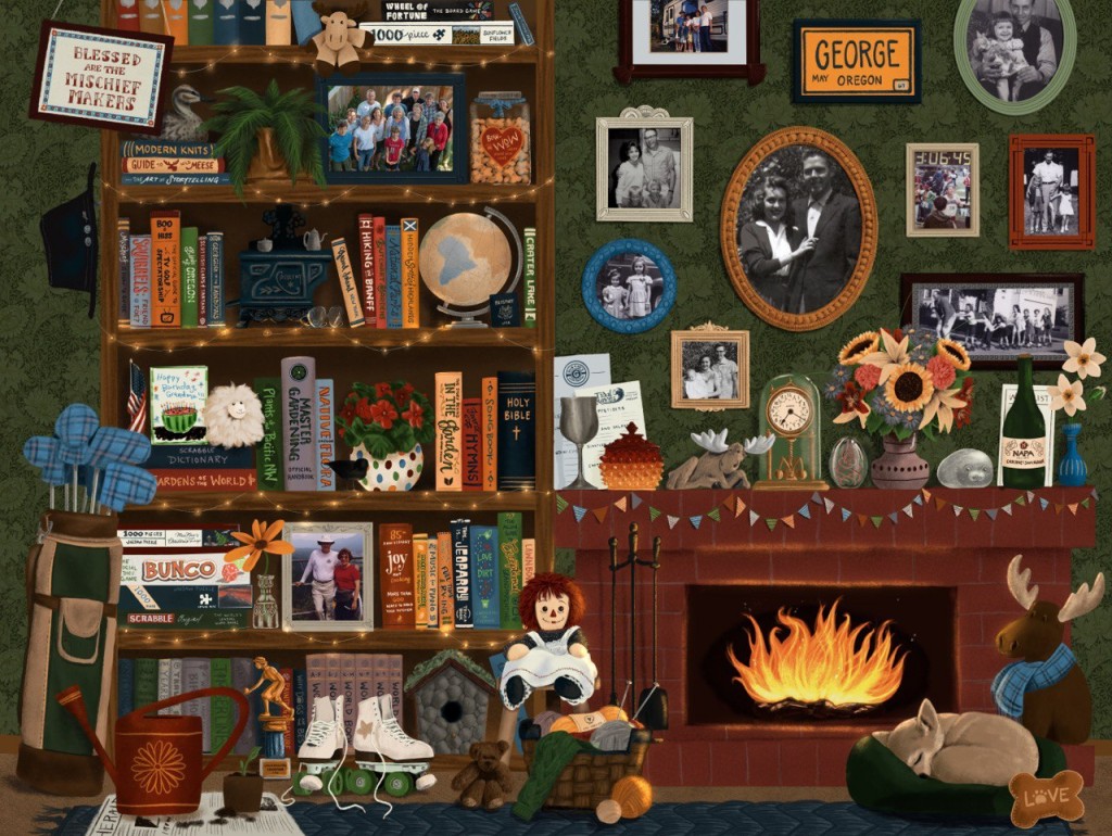 A 1000 piece jigsaw puzzle I recently painted as as gift for my grandma on her 85th birthday, using objects and photos of significance from her life. :)