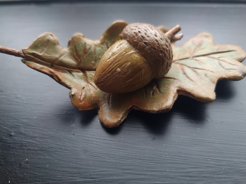 acorn, art, clay, craft, flora fauna, leaf, mixed media, nature, watercolour