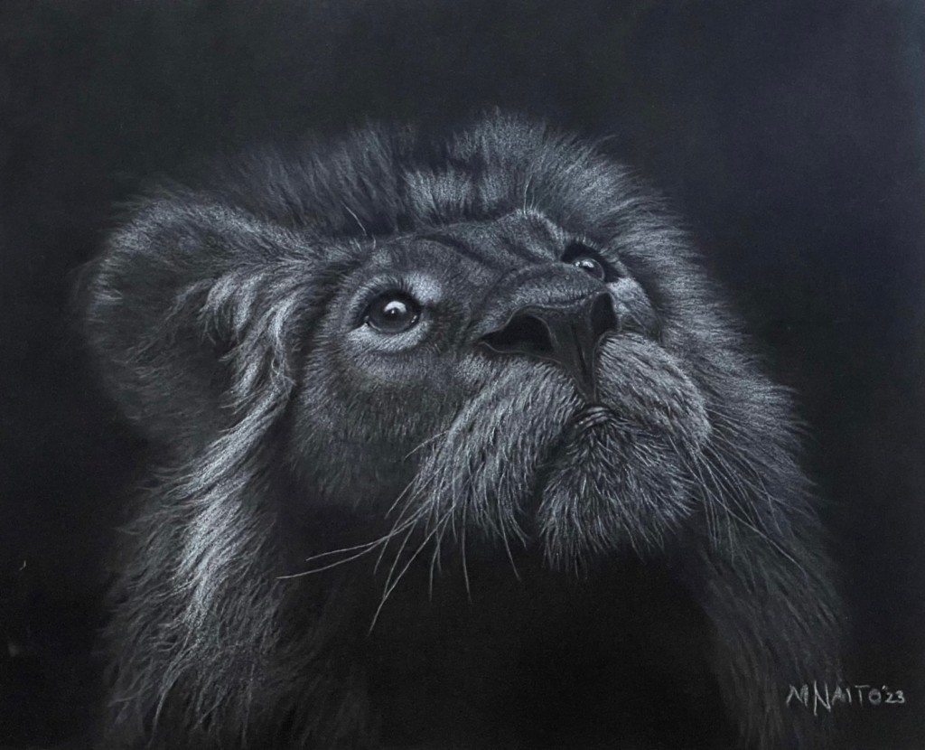 This was the second of the same lion drawn on two different surfaces. This one was drawn in pastels on Pastelmat paper.