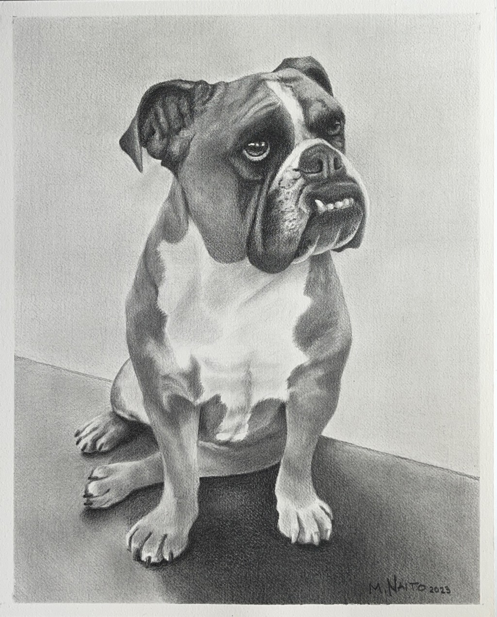 Bulldog portrait. Graphite on paper.