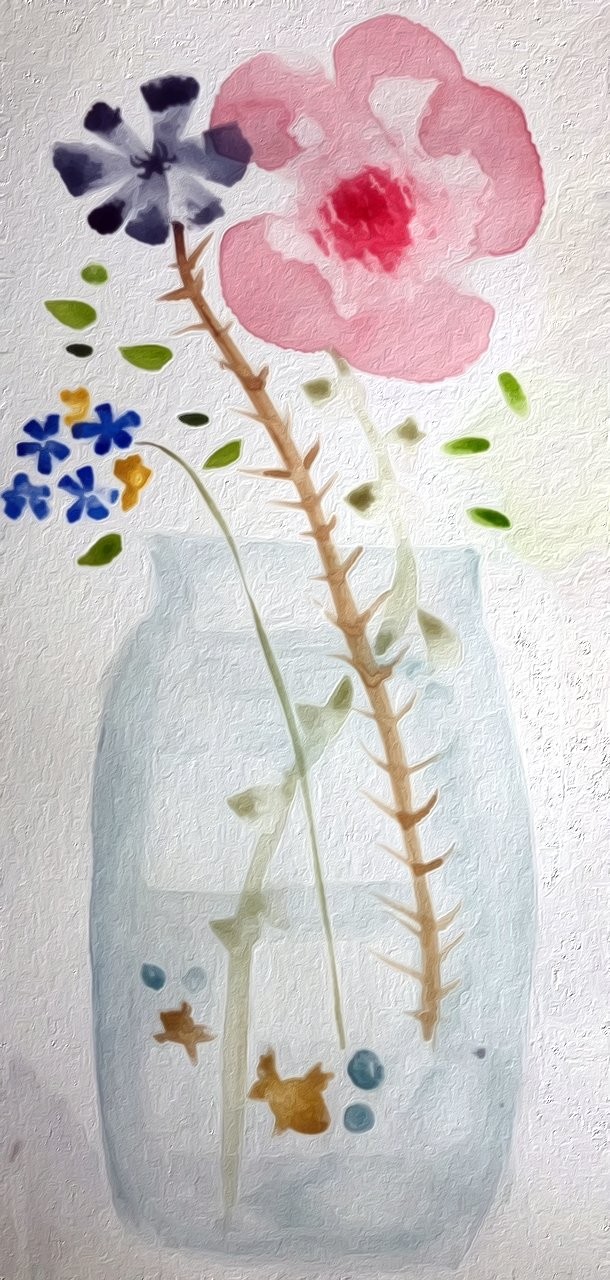 Originally painted in watercolor on watercolor paper and then filtered digitally. Inspired by Sara Berrenson and her book on how to Watercolor Flowers.
