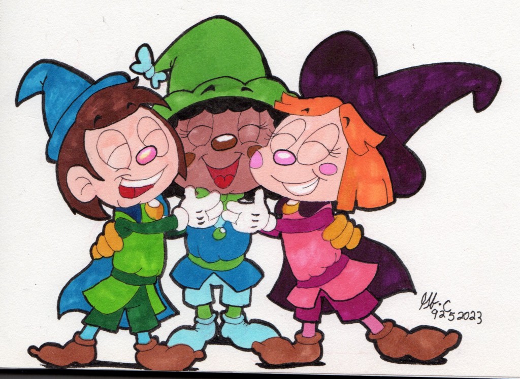 You draw such cute characters and your color is great.