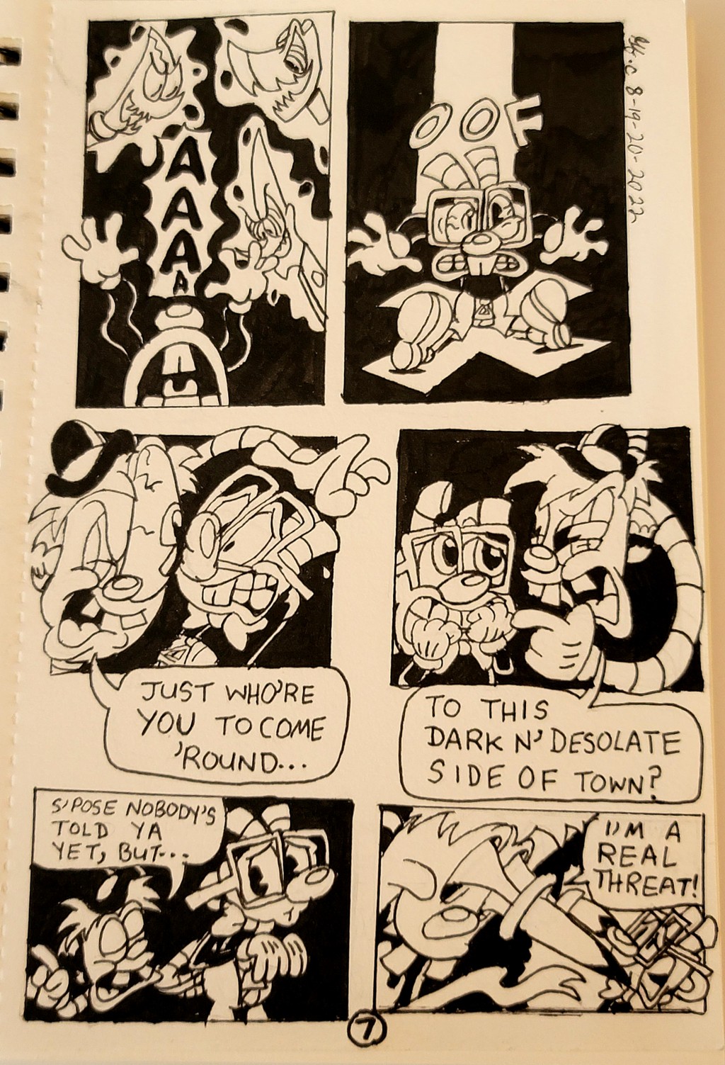 comics, cuphead, drawing, illustration, mugman, pen and ink, timothy t cup