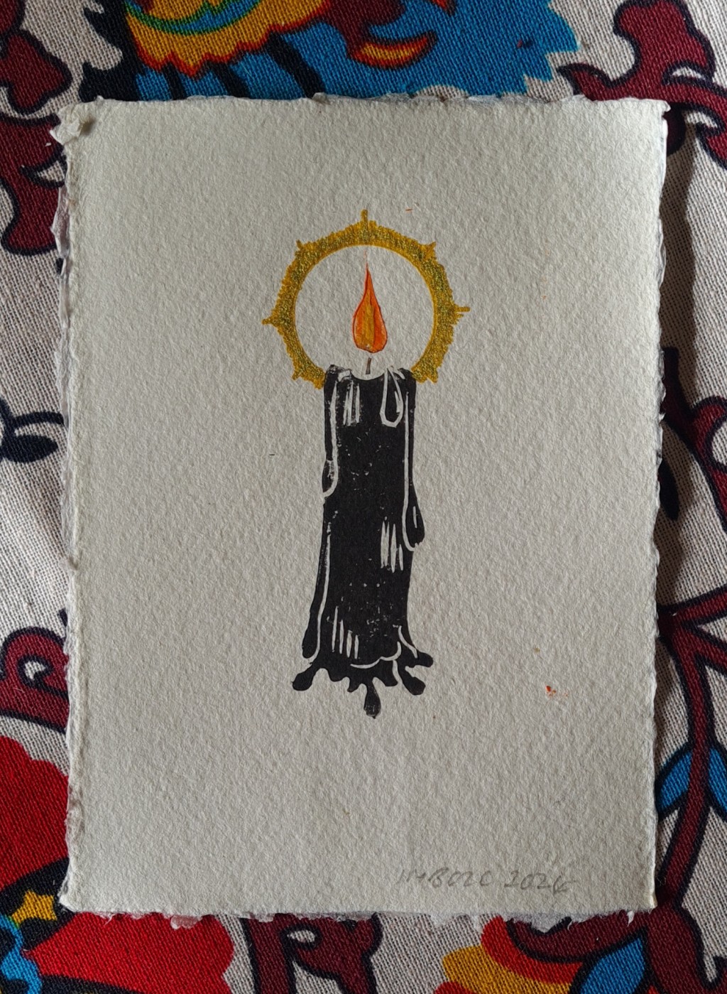 art, candle, illustration, imbolc, lino cut, lino print, painting, printing, printmaking