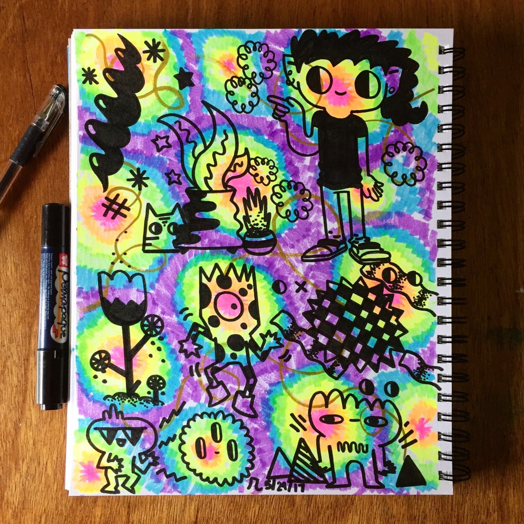 A little doodle on a 228 label made with highlighters and paint pens