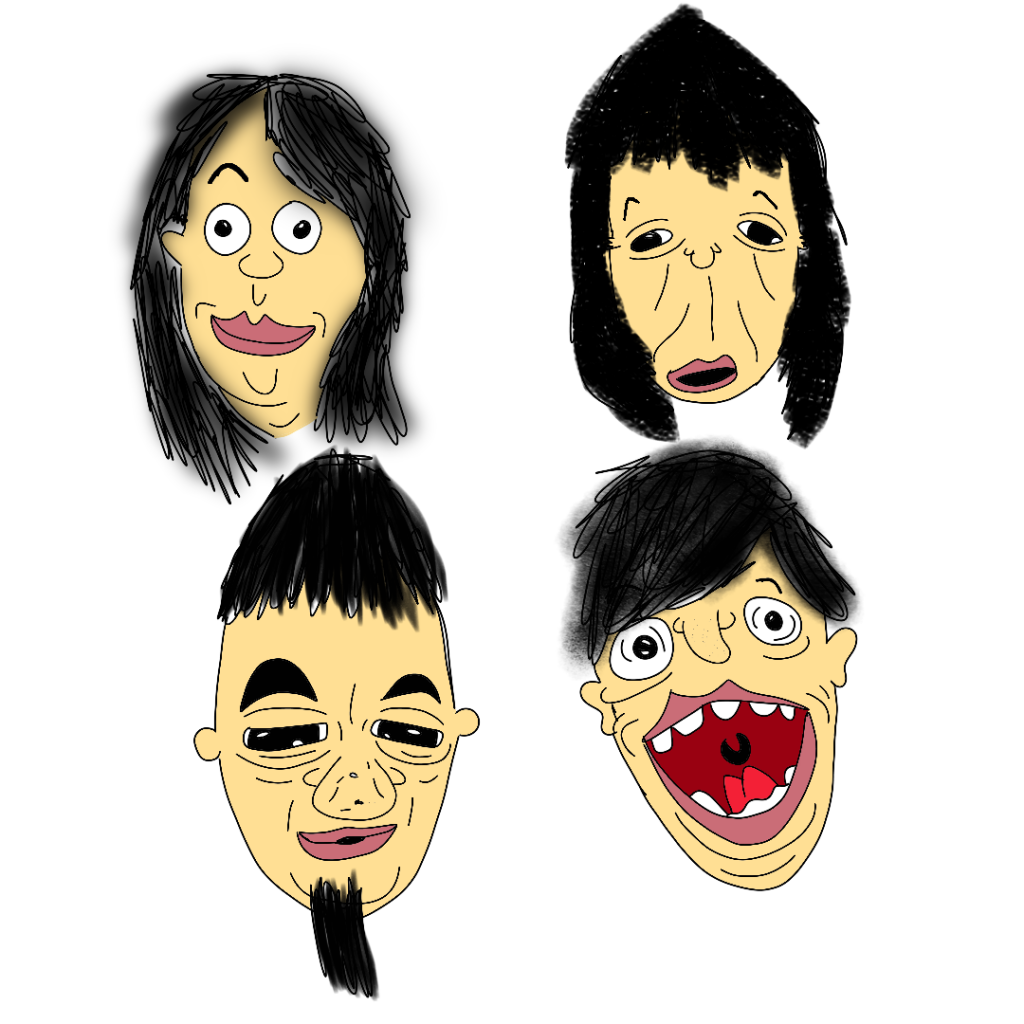 A funny sketch I made of 4 different and funny looking faces. Alittle practice on "funny" art. Aren't you glad that god has made all of us different and unique?