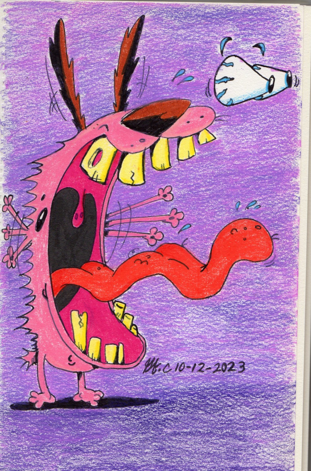 colored pencil, courage the cowardly dog, dog, drawing, illustration