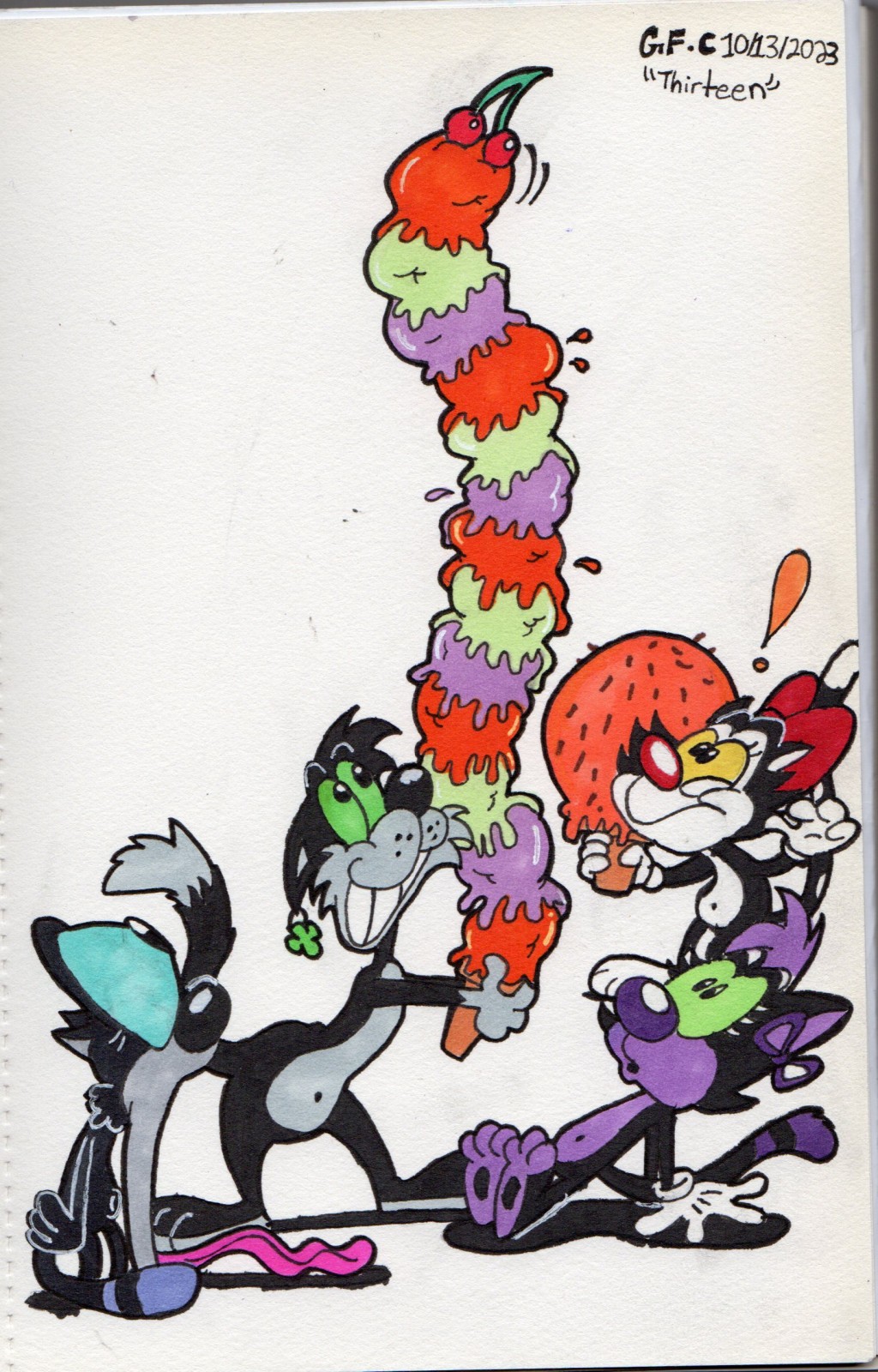 beltza, black cat, cartooning, cartoons, cats, drawing, fobbles, illustration, kixxy kittles, marker art, ruby