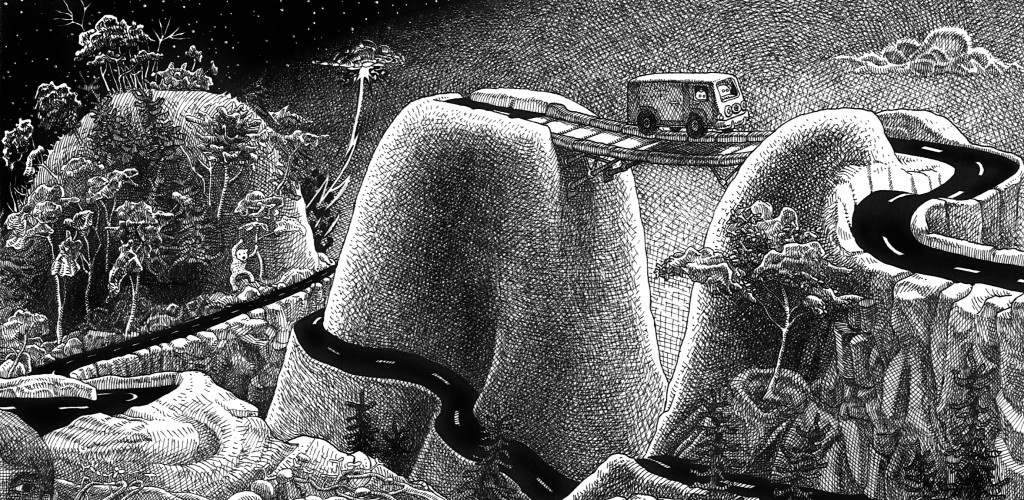 The second page of Steel Cloud has our heroes, Hardball and Riley with their band going on the road to perform. Little do they know they're going to have some trouble.