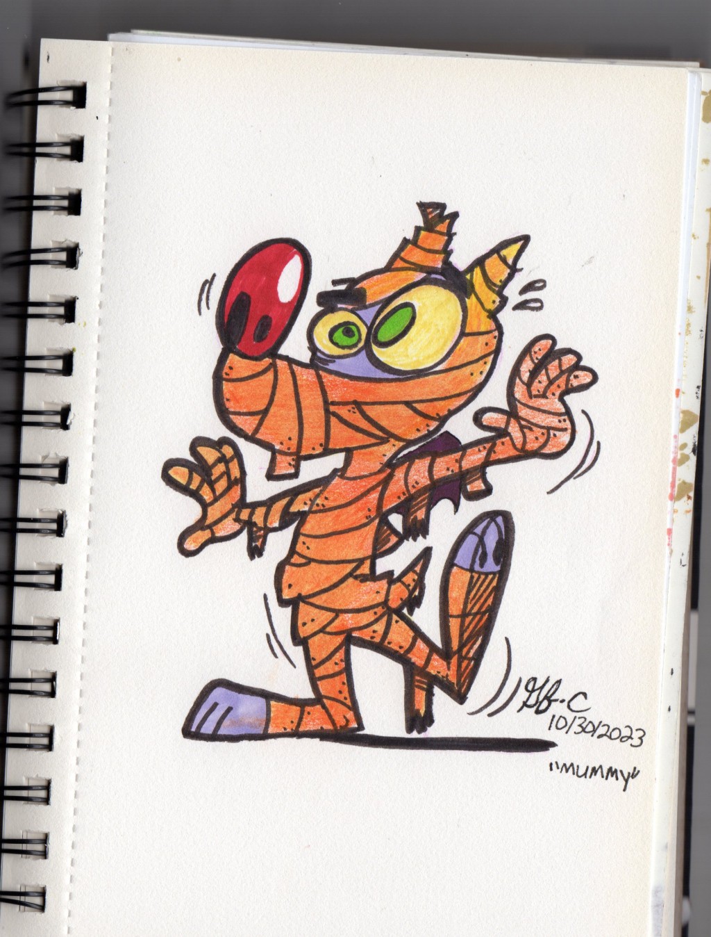 Quick, random Halloween themed doodle that features a bunch of wacky animals being carried by a candy corn shirt wearing dog. Well, not all of them. (the bird and bug're flying)