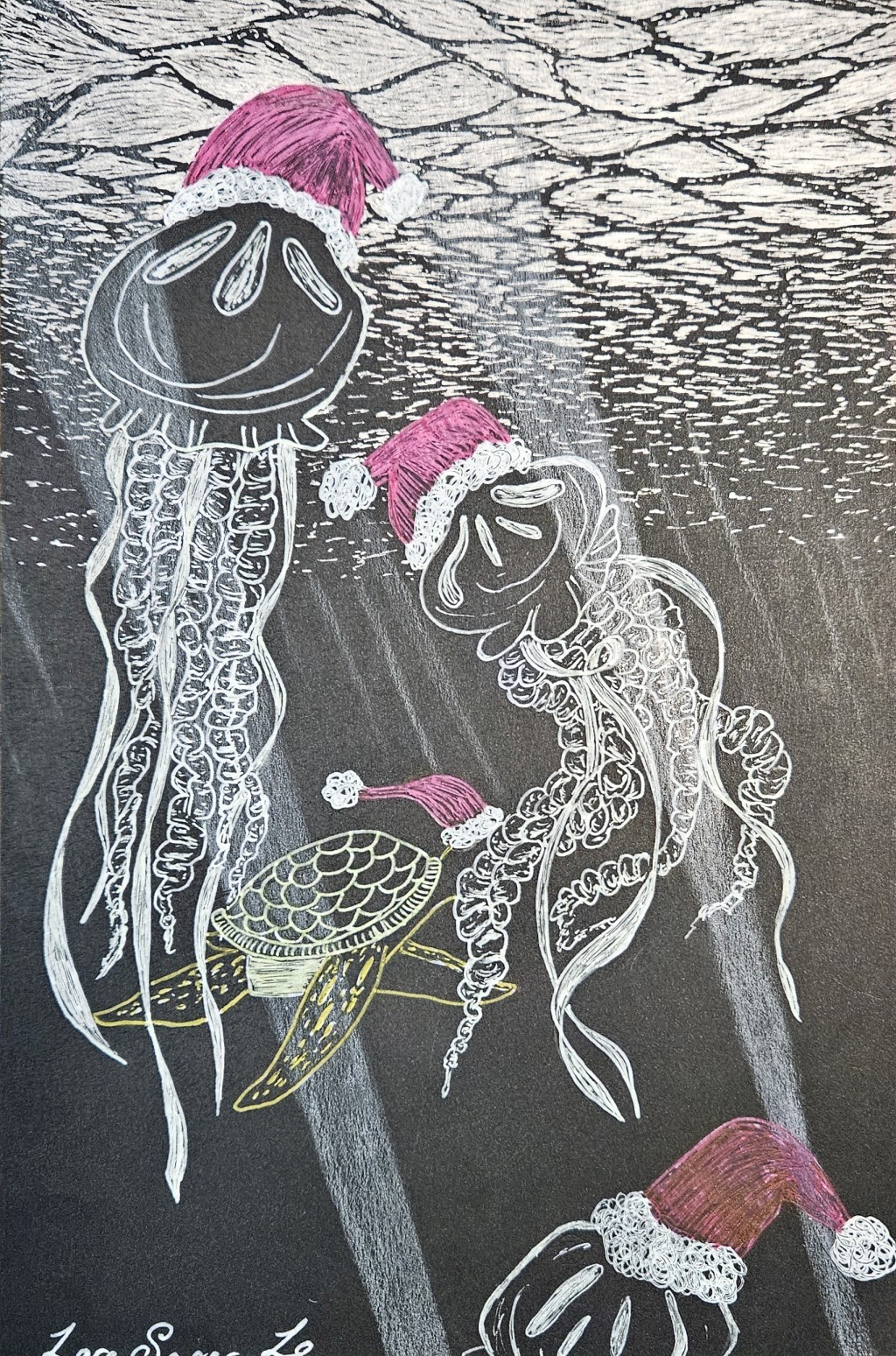 art, drawing, illustration, jellyfish, pen and ink, underwater