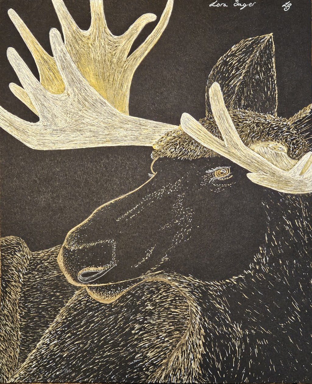 animal, drawing, illustration, moose, pen and ink