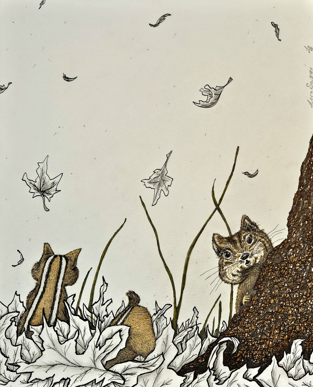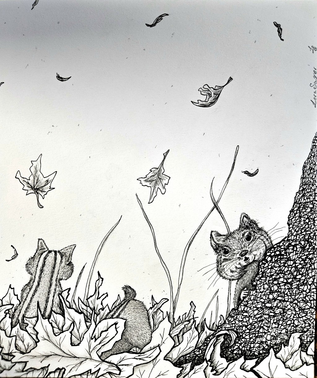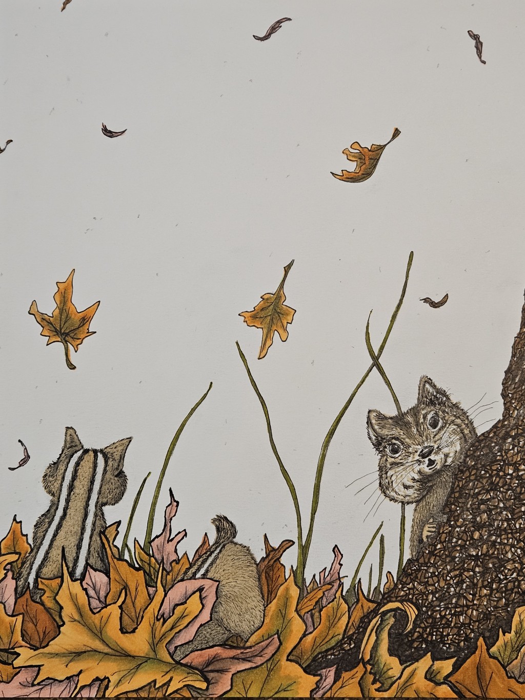 animals, chipmunk, drawing, illustration, markers, mixed media, pen and ink