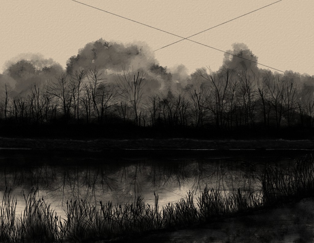 Cont. to work on BnW illustrations, I wanted to focus on making the reflections have a realistic quality. I struggle with clouds, but I felt I was most refined here. My BnW's seem to have so much more life and expression than my paintings. I'd love to hear your thoughts.