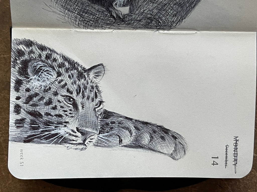 Magpie sketch with ballpoint pen (Pentel RSVP).
