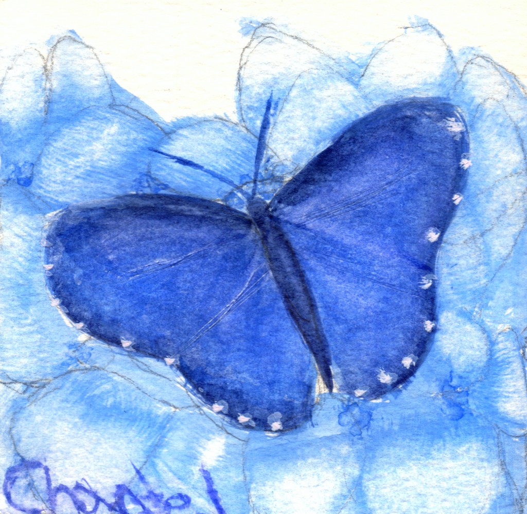 One of my butterfly paintings I did for practice last week. Forgot to erase some of the pencil marks, but it still looks nice :)