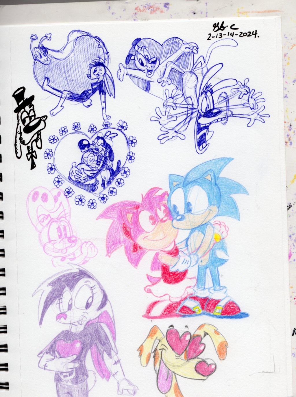 amy rose the hedgehog, ballpoint pen, colored pencil, dipsy diddle, drawing, george and louis, gothalina the gothic bunny girl, illustration, sonic the hedgheog