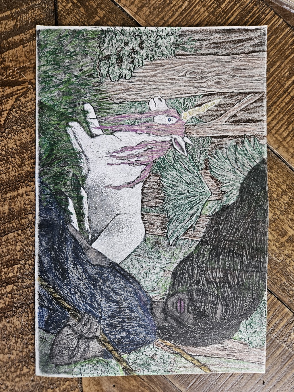 drawing, fantasy, illustration, nature, unicorn