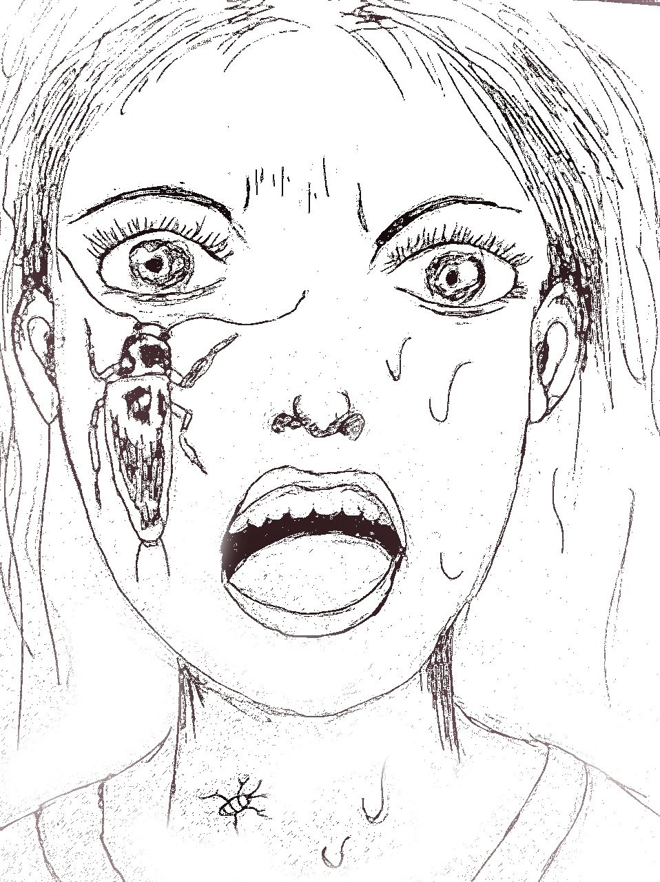 This is a scene that I drew from the movie Jeepers Creepers. I originally was not fond of this drawing and found it too childish but now I find it quite charming.