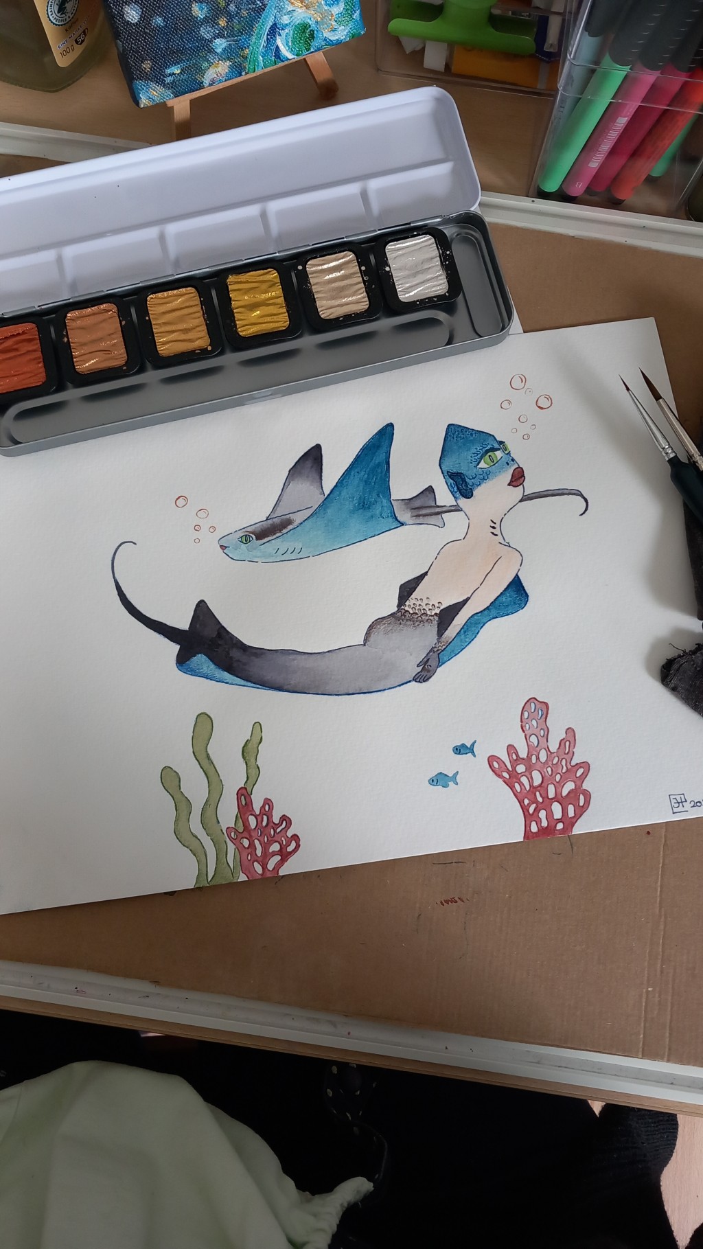 drawing, illustration, mermaid, painting, traditional art, watercolor