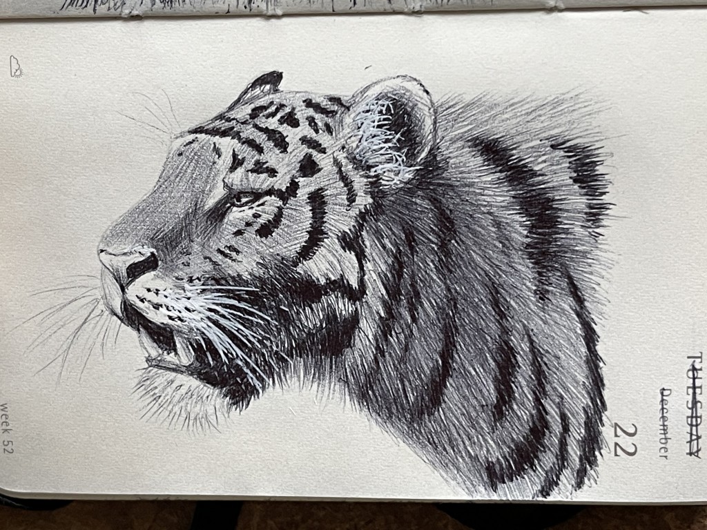 Inktober 2023 Day 22 Tiger ballpoint pen
