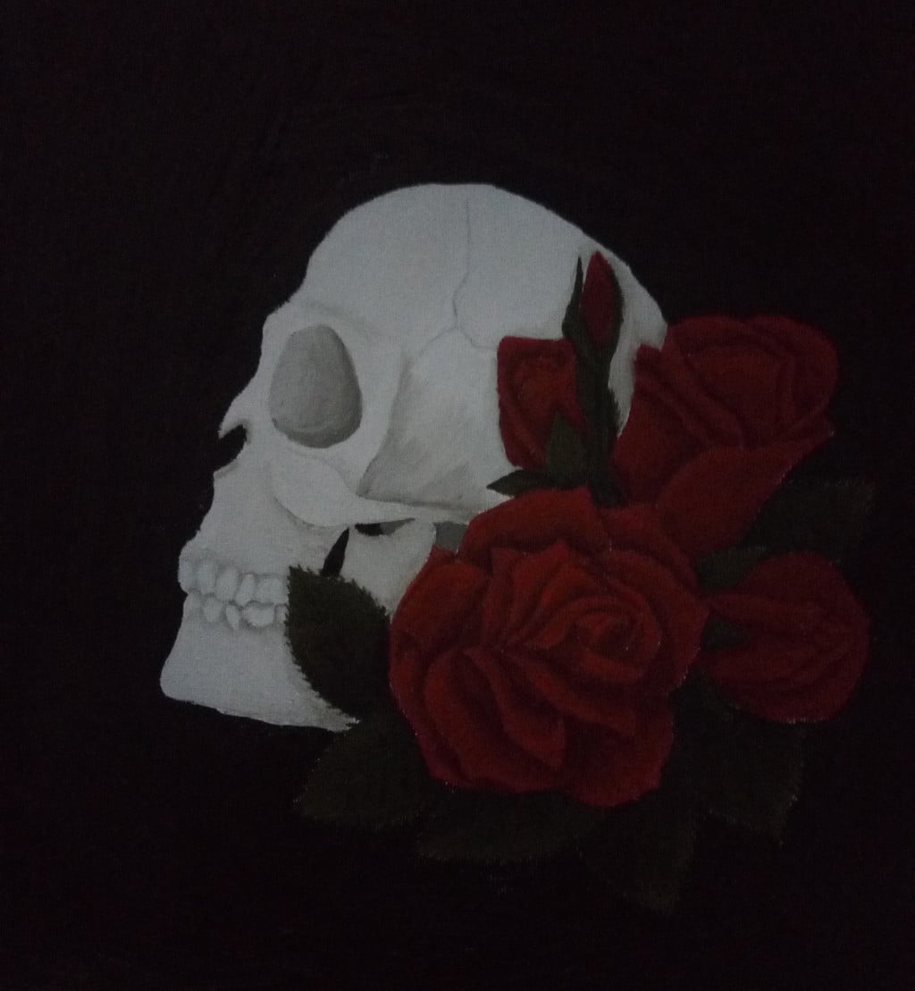 art, artist, botanical, creative, fine art, oil, oil painting, painting, rose, skull, traditional art