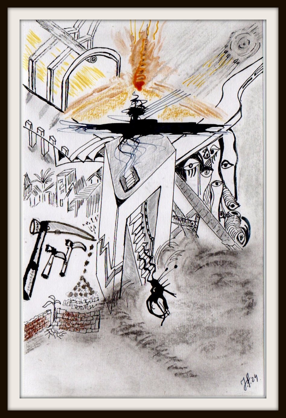 My imagination drawing, fine liner, pencil , acrylic