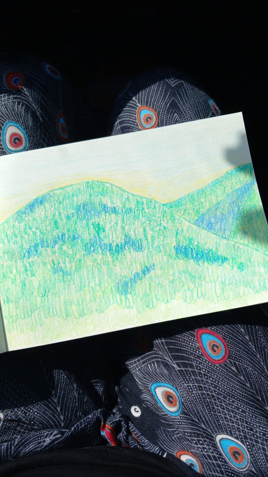 Crayons on sketching paper.