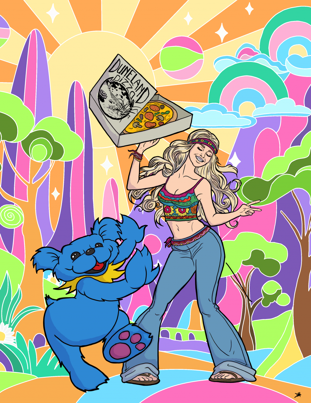 Another one for my friend. Not only does she own a pizza shop. She is also a huge Grateful Dead fan. I couldn't help but have her dancing with one of the bears